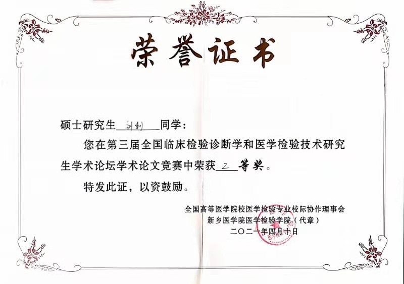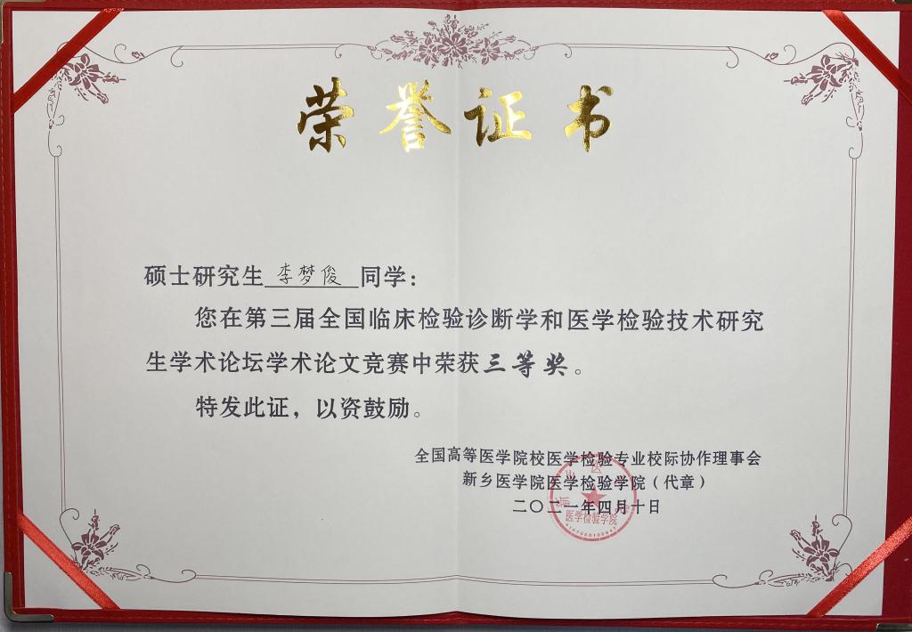 4月9日,第三届全国临床检验诊断学和医学检验技术研究生学术论坛在河南新乡隆重召开。必赢临床检验诊断学研究生郝晋芳、刘利、李梦俊代表山西医科大学汾阳学院进行了论文汇报,分别荣获了两个二等奖、一个三等奖的好成绩。