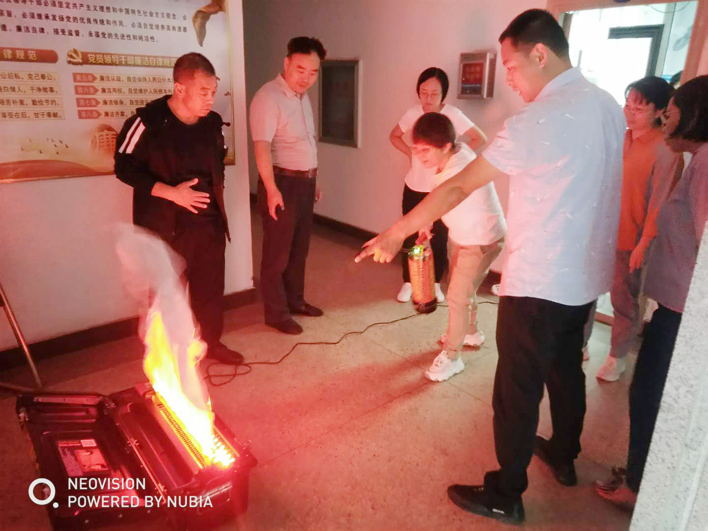 首先,演练负责人韩东红、梁庆刚、郭志峰讲解了有关火灾现场的应急处置方案,灭火器的使用原理以及相关的注意事项,并亲自演练了灭火器的使用方法。在认真听讲及观摩后,教职工亲自体验了现场灭火的过程,面对熊熊燃烧的火堆,教职工们表现得十分沉着,熟练地按照灭火的步骤和方法,将火情迅速扑灭。