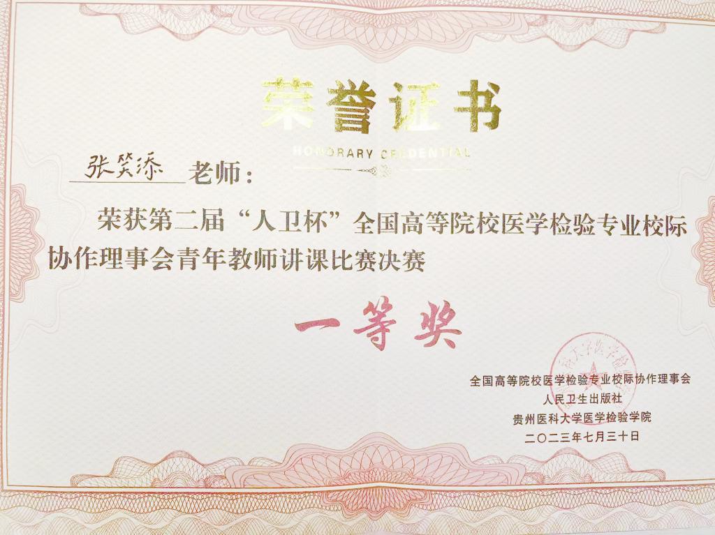 7月27至7月30日,全国高等院校医学检验专业第22次校际协作会暨第二届“人卫杯”医学检验青年教师讲课比赛决赛在贵阳举行,必赢医学检验系教师张笑添、郝广萍入围决赛,以出色的表现分别荣获一等奖。会议由全国高等院校医学检验专业校际协作理事会主办,贵阳医科大学承办。来自上海交通大学医学院、四川大学医学院、重庆医科大学、大连医科大学等全国40余所高等医学院校60余名教师参赛。
