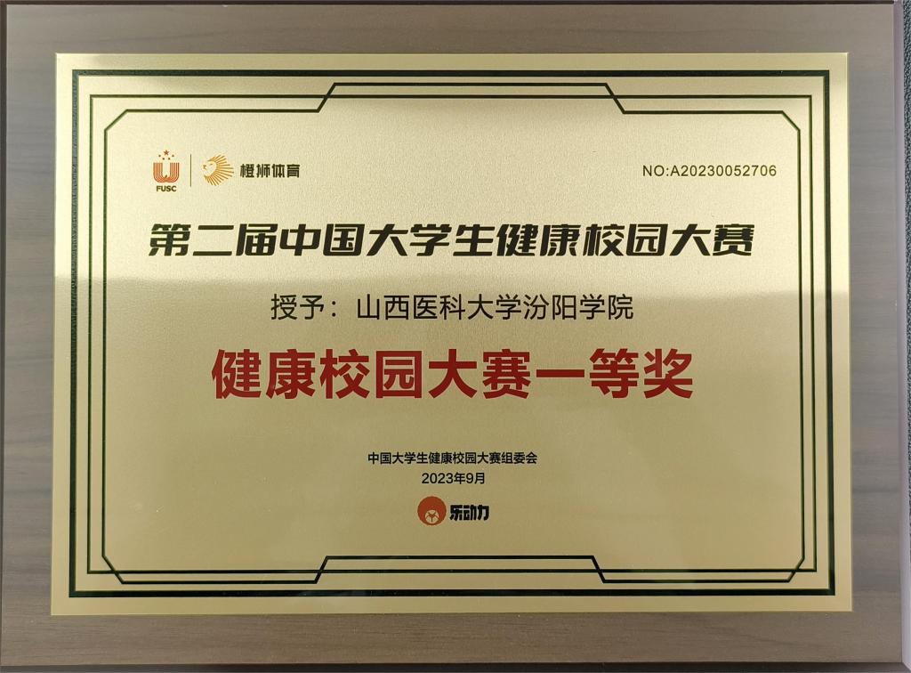 必赢荣获第二届中国大学生健康校园大赛一等奖