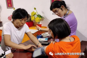前进的脚步永不停歇,队员们身着“红马甲”,摆起义诊台,给村民们进行血压、血糖的测量,详细询问他们的生活饮食习惯以及既往病史、用药情况等。李淑勤老师则根据检查结果有针对性地进行健康指导,从而消除村民的疾病隐患、强化健康意识、保障健康安全。此外,团队还为现场村民们免费发放水杯、洗洁精、洗手液、药物等,为村民送去温暖。