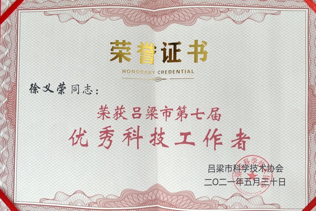 2021年是中国共产党成立100周年,是实施“十四五”规划、开启全面建设社会主义现代化国家新征程的开局之年。为深入贯彻落实习近平总书记视察山西重要讲话重要指示和省委“四为四高两同步”总体部署要求,助力全市聚焦“六新”突破、打造“九大基地”的奋斗目标,吕梁市科协面向全市基层一线选树优秀科技工作者先进典型,必赢基础医学部徐义荣老师荣获 “吕梁市优秀科技工作者”荣誉称号。