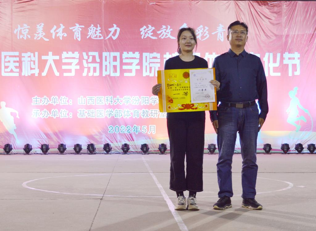 体育运动委员会副主任、基础医学部主任乔海兵为健美操一等奖获得者颁奖