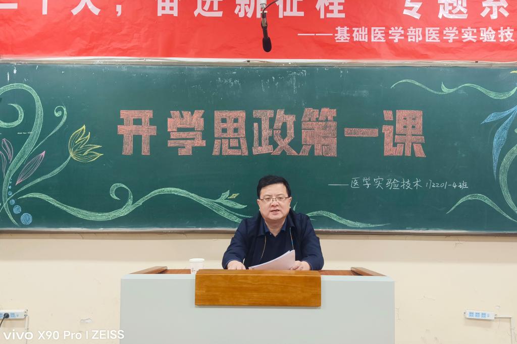 为深入学习宣传贯彻党的二十大精神,落实领导干部联系学生班级制度,3月14日晚,校党委副书记、院长孟小平以“把握当下 肩负使命 奋楫扬帆再出发”为题,为医学实验技术专业172201-4班学生讲授了春季学期“开学第一课”,辅导员宋艳萍、学业导师赵莹莹参加。