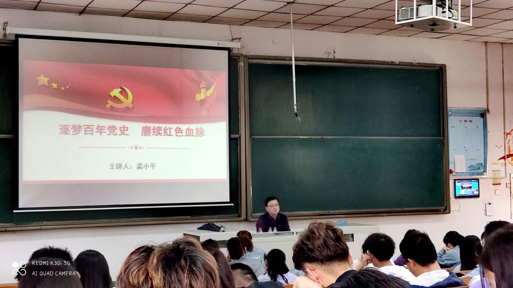 孟院长本节课主要以《逐梦百年党史 赓续红色血脉》为主题,围绕“马克思主义中国化”这条主线,从“党史学习教育的重大意义”、“党史发展脉络及中国共产党发展历程”、“从百年党史中汲取前行力量”等几个方面,着重讲述了中国共产党从奠基立业的开天辟地,到新中国成立的改天换地,到改革开放的翻天覆地,再到推进并实现强国伟业的惊天动地四个历史阶段的史实,用大量生动翔实的历史文献资料,并结合自身经历和感悟,生动讲述了百年党史中的关键历史人物、重要历史事件、经典历史符号等内容,为同学们学好百年党史、传承红色基因、凝聚奋进力量做了学习示范。