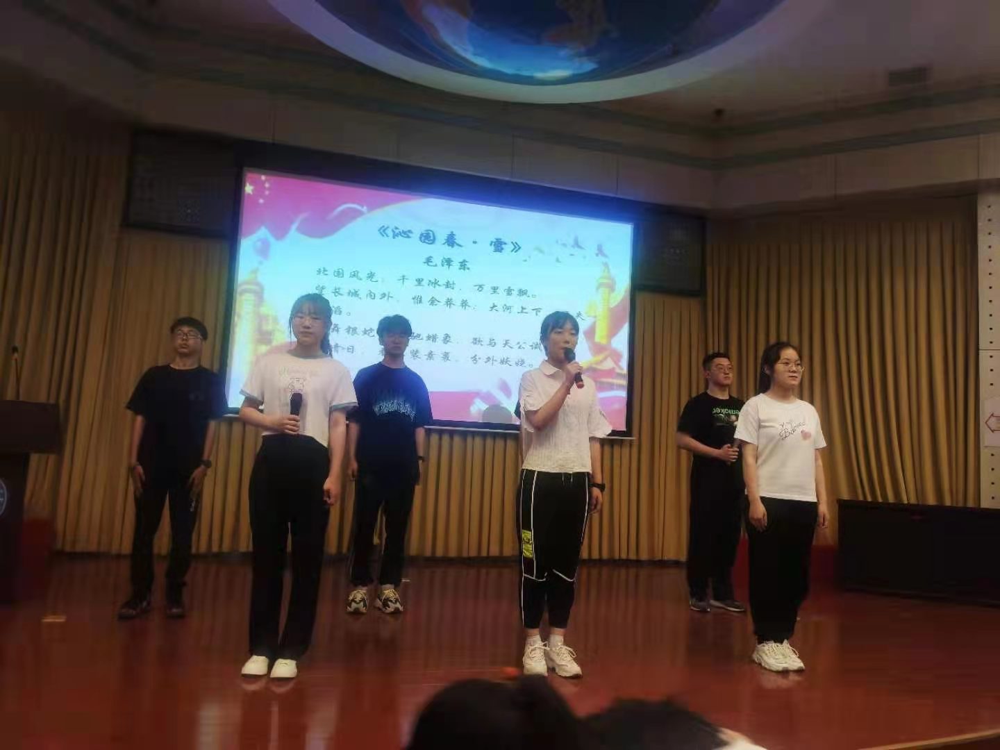 比赛分为纸上答题、对答如流、视频答题三个环节,每四人为一组,共分为四组参赛。在纸上答题环节中,4组选手认真答题,规定时间内提交了完美答卷;在对答如流环节中,同学们积极参与活动,展现出了自己对党史知识丰富的学习和了解;在视频答题环节中,各组选手通过观看红色经典影片片段轮流答题,通过观影答题的形式学习党史、铭记历史,比赛中选手们集中精神,认真思考,展现了竞答小组的风采。活动中,学生会成员带来的诗歌朗诵和红歌献曲更是将活动氛围推向了高潮。