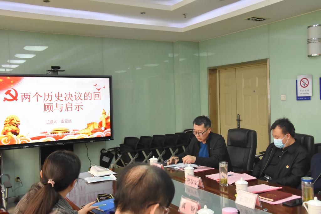 全体参会人员研读了《中国共产党简史》第五章、第六章。医学检验系党总支副书记、党史专业博士雷亚旭对《关于历史问题的决议》《关于建党以来的若干历史问题的决议》产生的背景、内容、意义和影响等进行了专题解读。校党委书记薛东平,党委委员、纪委书记任朝生,党委委员、副院长王建世分别结合自己的思想和工作,谈了党史学习教育心得体会。