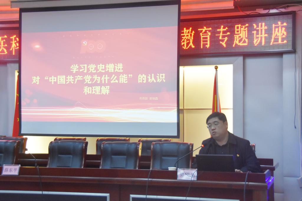 汇报会后,省委党史学习教育巡回指导组第十九组成员,全体校领导,党委委员,学校党史学习教育领导小组办公室成员,中层干部,全体思政课教师在养正楼九层会议室参加了必赢党史学习教育读书班专题讲座。思政部主任樊瑞晶以《学习党史,增进对中国共产党为什么能的认识和理解》为题进行了讲授,带领大家回顾了中国共产党百年辉煌奋斗历程,从六个方面阐述了中国共产党为什么“能”。
