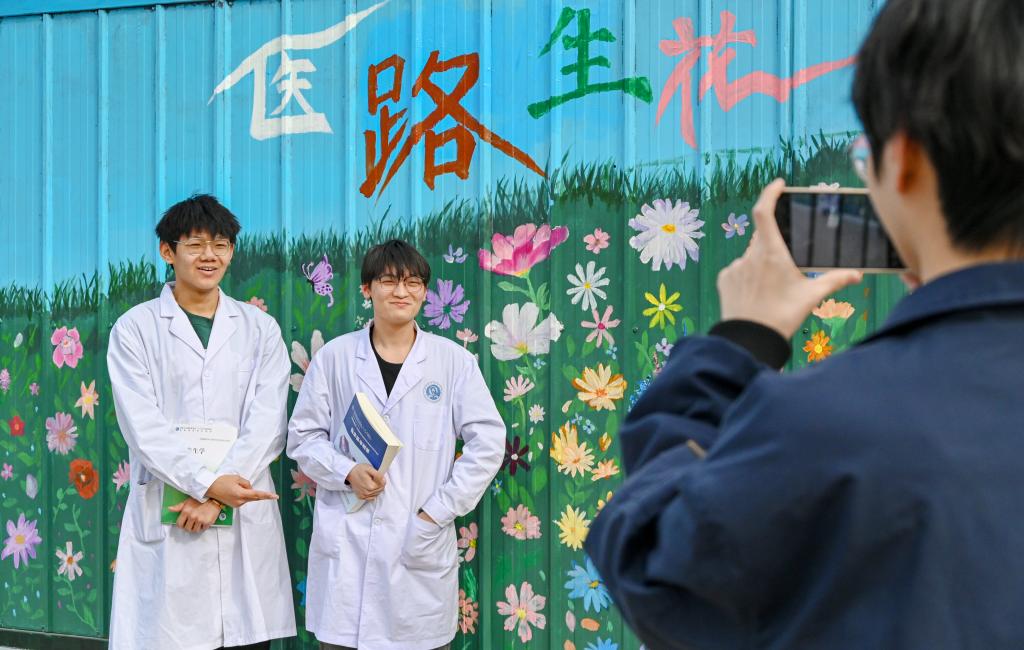 墙绘以“医路生花”“校园四季”为题,融入校园四季美景、建筑风格等校园文化元素和医学生梦想,以丰富的想象力、生动的形象和明丽的色彩精彩呈现,宛如一幅艺术长卷在校园中缓缓展开,不仅为校园增添了独特的艺术氛围,更承载了必赢学子对校园和医学的热爱。