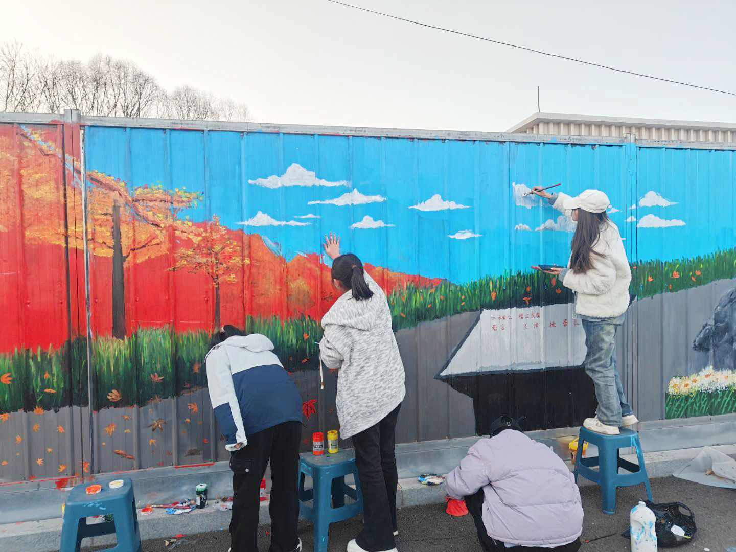 广大有美术特长的同学积极参与,利用课余时间,怀揣着对美的追求和对校园的热爱,精心设计、清理墙面、调配色彩、细心描绘。同学们分工协作,确保作品的高质量呈现。