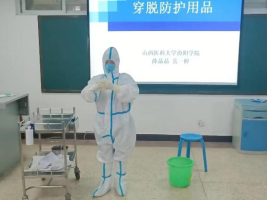 为严格落实常态化疫情防控措施,切实做好新冠肺炎疫情常态化防控工作,进一步提高护理系师生实战操作能力和个人防护能力,全面提升疫情应急处置能力,依法、科学、规范开展疫情防控工作,护理学系第一党支部在系部党政领导的支持下,利用五一假期期间在养正楼三层示教室为全系教师和部分学生开展了穿脱防护服培训。培训由一支部党员教师薛晶晶和岳一婷主讲。