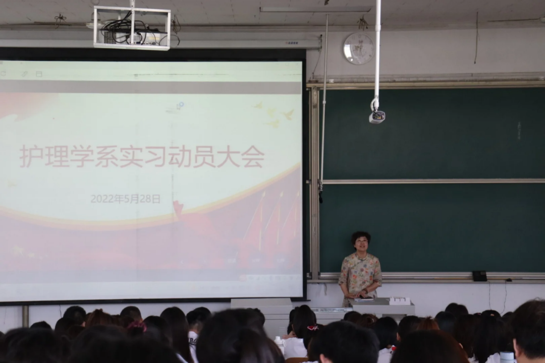 为了做好2022年实习生实习前的准备和教育工作,帮助同学们确立明确的实习目标,更快更好了解、规划、适应临床实习,以优异的成绩圆满完成实习任务。护理学系于5月28日上午在三阶四教召开实习动员大会。参加动员大会的有护理学系党总支副书记赵彦文、护理学系副主任张涌静、护理学系团委书记康智芳、护理学系实习班班主任及辅导员、护理学系专职辅导员、2019级护理学专业本科学生、2019级助产学专业本科学生。