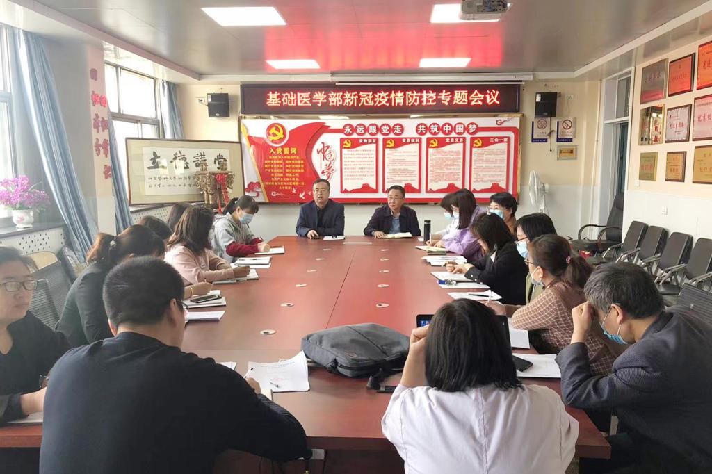 基础医学部主任乔海兵提出三点要求:一是教职工要提高思想认识,担起责任,继续配合学校做好校园封闭管理,落实好打卡工作和报备制度,慎终如始地把学校疫情防控工作继续抓实抓紧;二是要及时准确掌握和更新在校师生信息情况,做好因疫情缺勤师生的登记和追踪,继续执行教职工“两点一线”的上班政策,扎扎实实把学校疫情防控工作做好;三是在做好教学工作的同时做好学生的心理辅导工作,密切关注封闭期间学生的心理健康,做到及时疏导和个别指导。