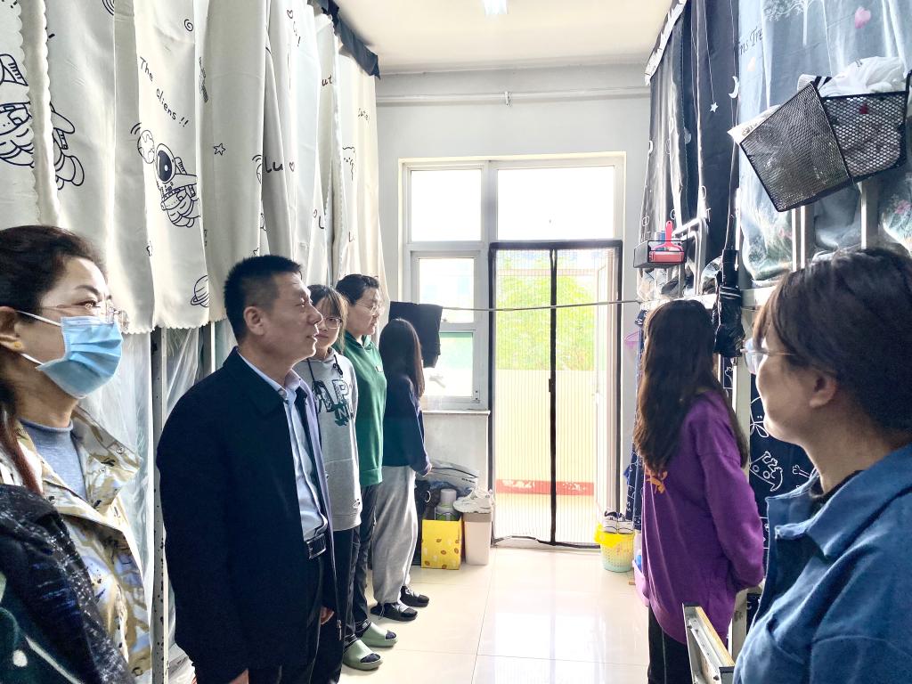 会后,党委书记闫敬来深入联系班级61911-18班和学生宿舍,与同学们亲切交流,询问了解同学们在学习、生活中遇到的困难和问题,并就学生思想状况、专业学习、社会交往、心理健康以及班风学风等方面与班主任、辅导员深入沟通,充分了解班级整体情况。闫书记对同学们积极主动配合学校做好疫情防控工作表示感谢,对同学们展现出的蓬勃向上、阳光朝气的新时代大学生风貌给予充分肯定,并勉励同学们志存高远、勤奋学习,努力成为担当民族复兴大任的时代新人。