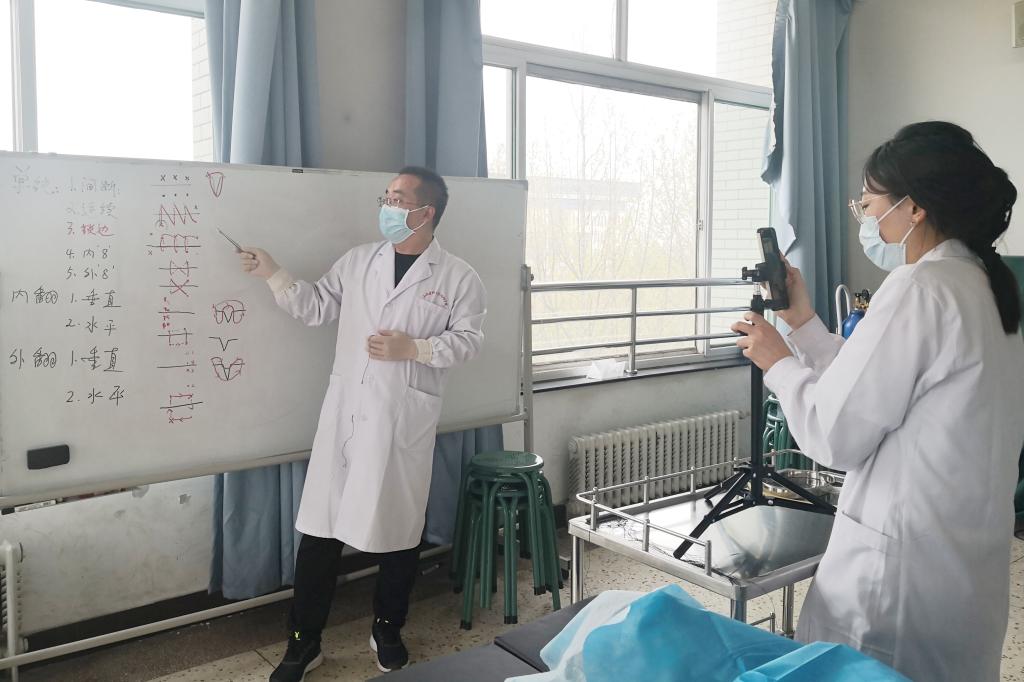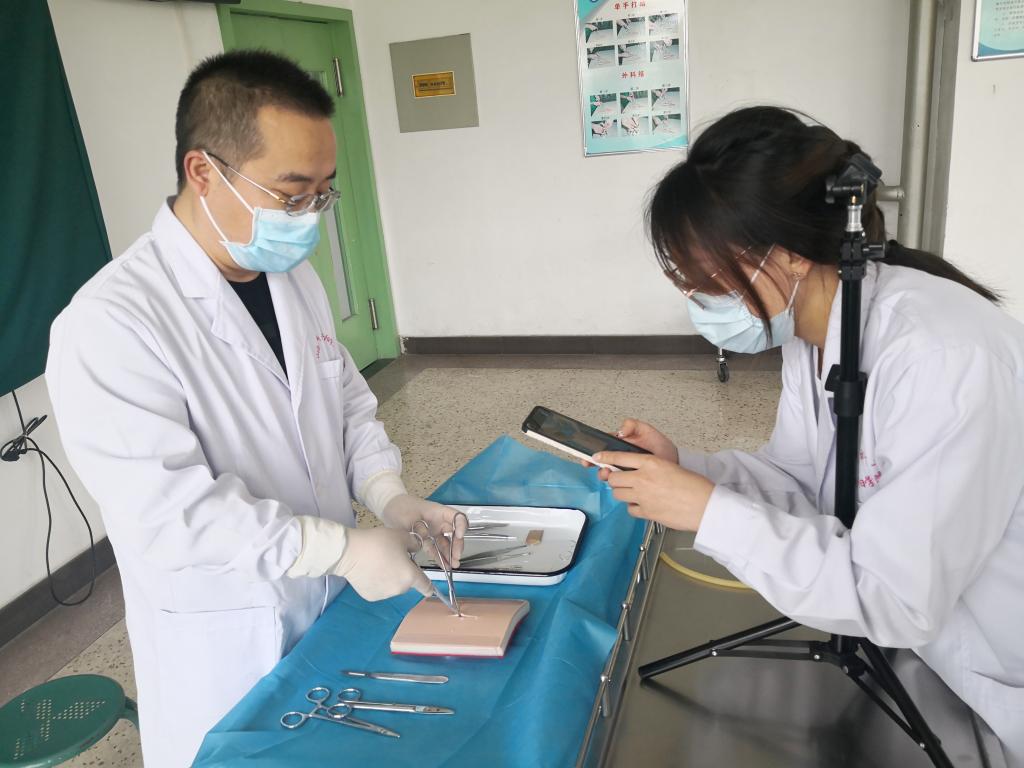 针对疫情常态化形势,在学校和系部的统一领导组织下,临床医学系积极应对,在线上和线下教学中顺畅切换储备了大量经验。针对本轮疫情,临床医学系同样具备成熟的应对策略,保证学生“停课不停学”,不断提升线上教学质量,原来手拿手术刀的老师,摇身一变为“网络主播”,甚至尝试技能操作课程的网络直播教学,取得了良好的教学效果,受到了师生的广泛好评。