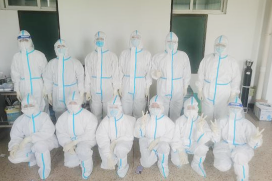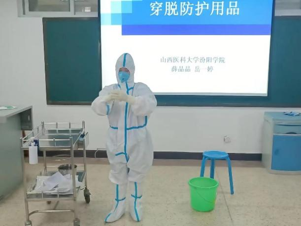 最后,在场全体师生进行了防护服穿脱操作练习。