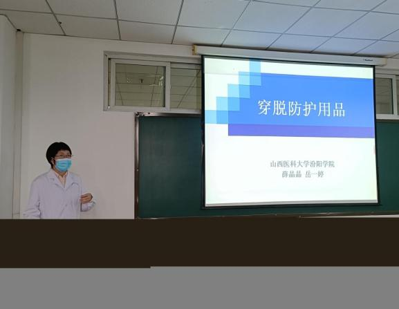 此次培训分为职业防护用品的使用讲解和实操演示两个环节。薛晶晶老师从分级防护、防护服介绍、用品准备、操作流程及注意事项等方面对疫情防护的理论知识进行详细的讲解,并通过错误和正确示范对比,帮助大家准确掌握规范流程。