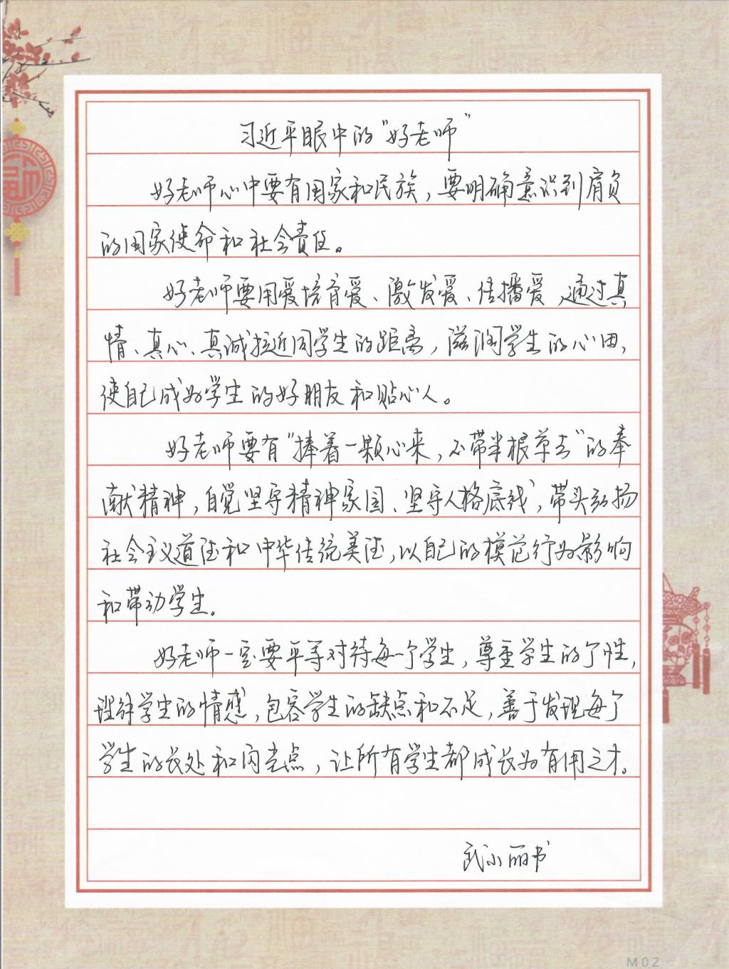 随风潜入深深夜,润物无声是良师。为进一步增强教职工凝聚力、战斗力和向心力,丰富教师文化底蕴,陶冶教师情操,展现天使团队教师风采。在第38个教师节来临之际,护理学系分工会在系部党政领导的支持下,举办了“培根铸魂育新人”为主题的教师硬笔书法比赛和团建拓展活动。