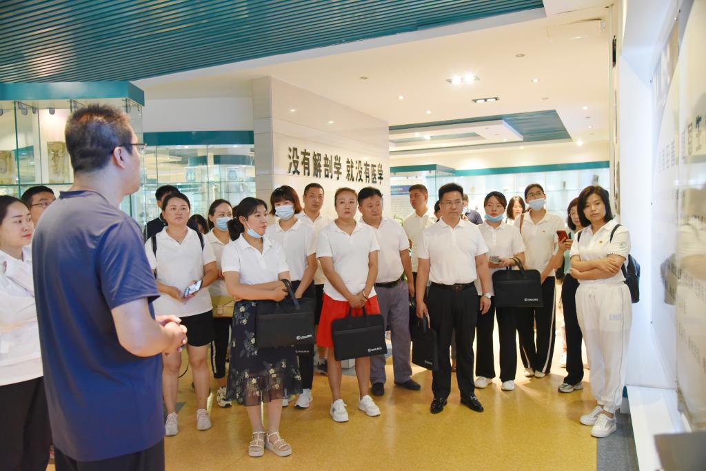 7月26日,新疆昌吉州教育行政管理干部能力提升研修班来必赢交流学习,必赢党委书记闫敬来,党委委员、副院长陈振文,党(院)办主任范军军及相关部门负责人参加。新疆昌吉州教育行政管理干部能力提升研修班近50人参观了必赢校史馆和人体生命馆。