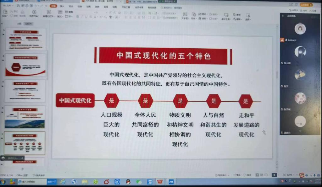 思政课教师们依托课堂主渠道,结合学生实际,通过学习通、腾讯会议等平台,分专题、成系列,利用每次课前时间,用学生听得进、听得懂的语言开展专题宣讲,教育引导广大学生坚定理想信念,锐意拼搏进取,热情拥抱新时代,与国家发展同行,与民族复兴共进。接下来,思政课教师将继续担负起党的二十大精神的学习者、传播者、实践者的角色,将理论宣讲与社会实践结合起来,创新方式方法,切实把党的二十大精神讲深、讲透、讲活,提升思政课的凝心铸魂育人成效。