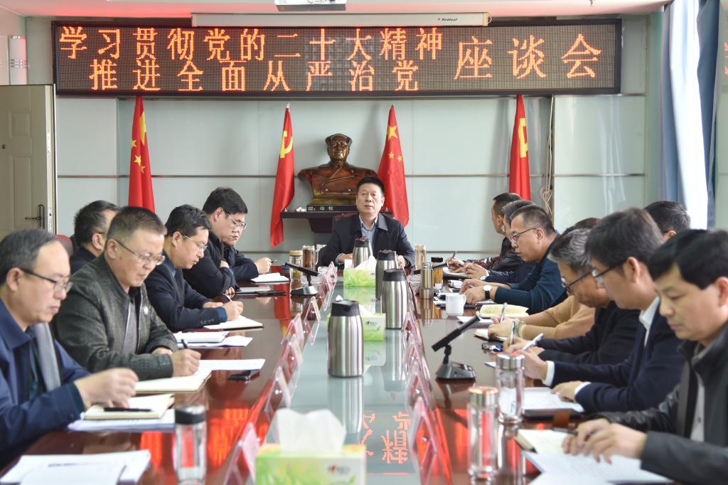 10月27日下午,党委书记闫敬来主持召开学习贯彻党的二十大精神,推进全面从严治党座谈会,党委委员、党委副书记王伟,党委委员、纪委书记尹锡昊,党委委员,各党总支(直属党支部)书记参加了座谈会。