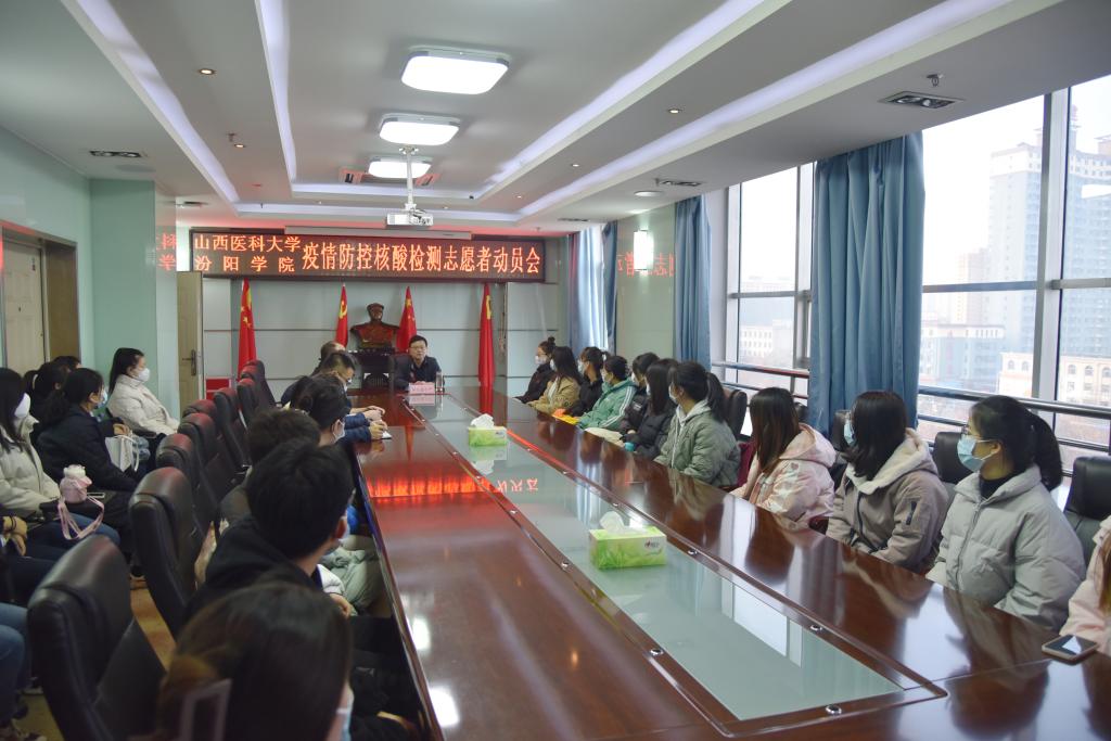 11月23日上午,必赢派出第二批PCR检测志愿者赴汾阳市抗疫一线支援。校党委副书记、院长孟小平在养正楼7层会议室主持召开出征动员会。党委宣传部、学生工作部(处)、医学检验系相关人员和医学检验系S72201-3班的40名第二批PCR检测志愿者参加了会议。