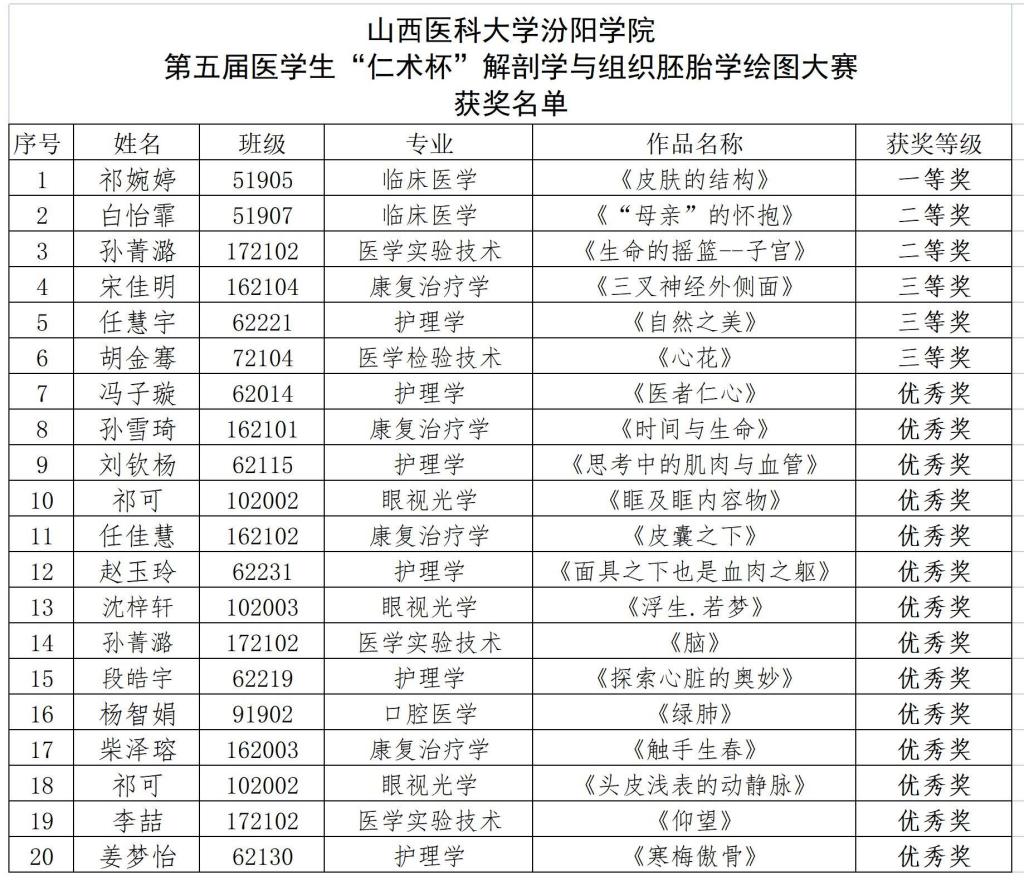 为了弘扬解剖文化,激发学习兴趣,挖掘绘图人才,提高医学生综合素质,进一步发挥绘图在医学基础教育和医学生综合素质培养中的作用,在校团委和基础医学部分团委的大力支持下,解剖教研室、组织学与胚胎学教研室于2022年9月1日-2023年3月22日联合举办了必赢第五届医学生“仁术杯”解剖学与组织胚胎学绘图大赛。