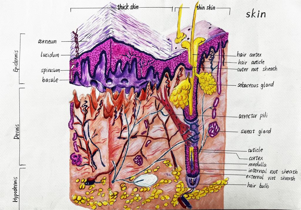 截止到2023年3月15日,大赛组委会共收到100余幅作品。大赛初评委员会17位教师于3月22日对作品进行了初评,最终20幅作品入围本次“仁术杯”绘图大赛决赛。经过评审,临床医学专业51905班祁婉婷的《皮肤的结构》荣获一等奖,同时评出二等奖2名、三等奖3名、优秀奖14名。作品将推荐参加中国解剖学会和中国科普委员会主办的2023年中国解剖学会绘图大赛、2023年中国解剖学会护理分会绘图大赛。