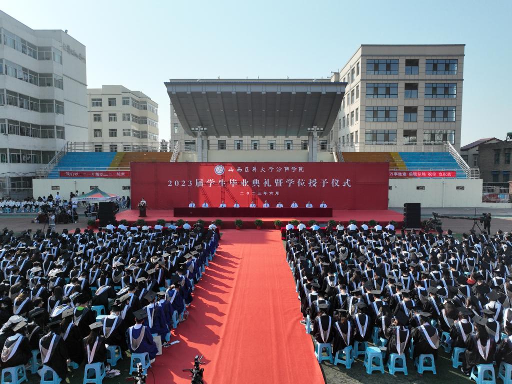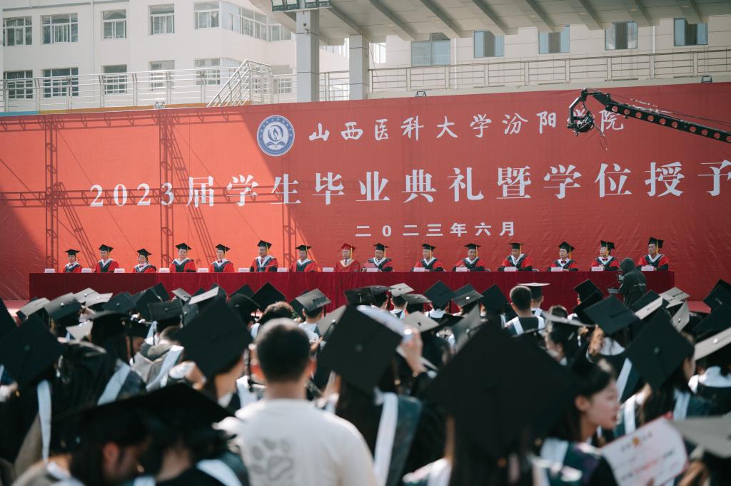 党委书记闫敬来致辞,代表学校向1998名本科生和30名硕士研究生顺利毕业表示衷心祝福,向悉心教导同学们的老师、辛勤抚育同学们的父母、关心帮助同学们成长的社会各界表示诚挚感谢。闫敬来书记与同学们一同回顾了在汾阳学院的成长经历,殷切嘱托同学们:一是要坚定信念,厚植爱国情怀。希望同学们胸怀“国之大者”,树立家国情怀,时刻牢记“请党放心、强国有我”的青春誓言,用坚定信念激扬奋斗精神,与祖国同向同行,在实现民族复兴的赛道上奋勇争先,自觉把人生理想融入国家和民族的事业中去,在实现“中国梦”的生动实践中放飞青春梦想,为实现“健康中国”不懈奋斗。二是要秉承校训,勇担医者使命。希望同学们在未来的日子里,时刻牢记“健康所系,性命相托”的医者誓言,秉承“仁术爱仁,精益求精”的校训,恪守“求真”的科学精神,遵循“求是”的医学规律,敬佑生命、救死扶伤、甘于奉献、大爱无疆,为祖国医药卫生事业的发展和人类身心健康奋斗终身。三是要修身立德,锤炼品格修养。希望同学们不断提升自身修养,锤炼厚德品格,不管顺境、逆境都要心怀希望,永远保持乐观豁达、淡定从容的心态,在千磨万击中愈加坚韧,在风雨兼程中行稳致远,永远做人生路上的追光者。