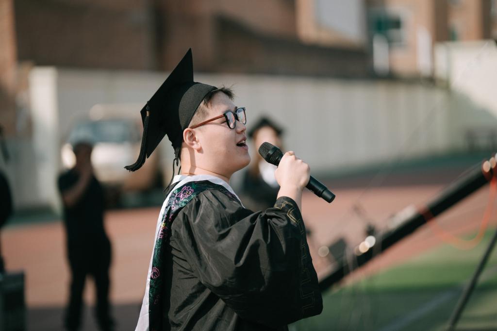 毕业生代表、临床医学系张楠同学发言,表达了对母校的深情祝福与深厚感激之情。在校生代表、护理学系廉冰洁同学发言,表达了对学长学姐的诚挚祝福。教师代表、眼视光学系刘院斌教授深情寄语同学们要牢记校训精神,在医学道路上不忘初心、勇毅前行。