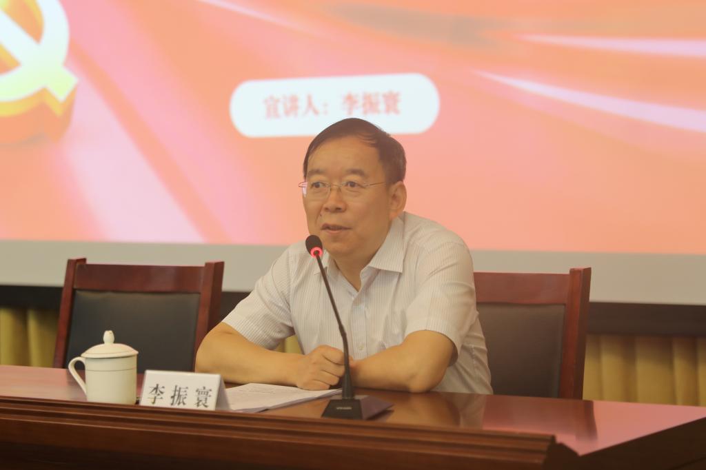 李振寰从三个方面作了精彩宣讲:党的二十大擘画强国复兴宏伟蓝图,为党和国家事业发展指明了前进方向确立了行动指南;完整准确全面理解把握党的二十大精神,坚决把思想和行动统一到以习近平同志为核心的党中央决策部署上来;坚决扛起新时代新征程使命任务,凝聚中国式现代化青年先锋力量。