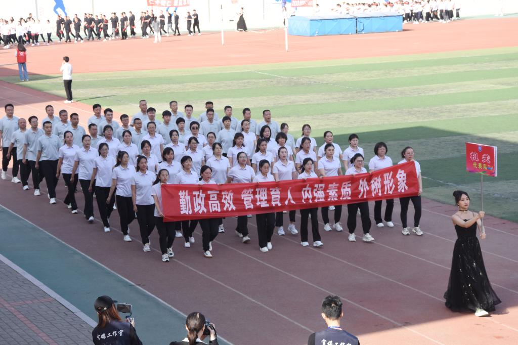 伴随着雄壮的《运动员进行曲》,国旗、校旗、会旗、会徽、宣传、鲜花、彩旗方队依次入场,随后是裁判员、教工和学生代表队。他们迈着铿锵有力的步伐、喊着高亢嘹亮的口号、精神抖擞地走过主席台。激情飞扬、创意新颖的队列表演赢得在场领导和师生们的阵阵掌声。这是学校精神的一次大体现,也是师生风貌的一次大展示。入场后,是隆重的升旗仪式,在雄壮的国歌声中,五星红旗冉冉升起;在激昂的校歌声中,校旗和第三十届田径运动会会旗缓缓升起。