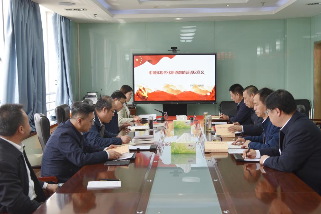 在此次主题教育读书班期间,思政部教师赵秀敏为读书班作了题为《中国式现代化新道路的话语权意义》的专题辅导。她围绕中国式现代化新道路的探索历程、核心要义、成功密码等方面,旁征博引、深入浅出地讲授了中国式现代化的话语权意义,主题鲜明、重点突出,内涵丰富,既有坚定的政治立场,又有宽广的国际视野,让读书班成员深受启发和教育。