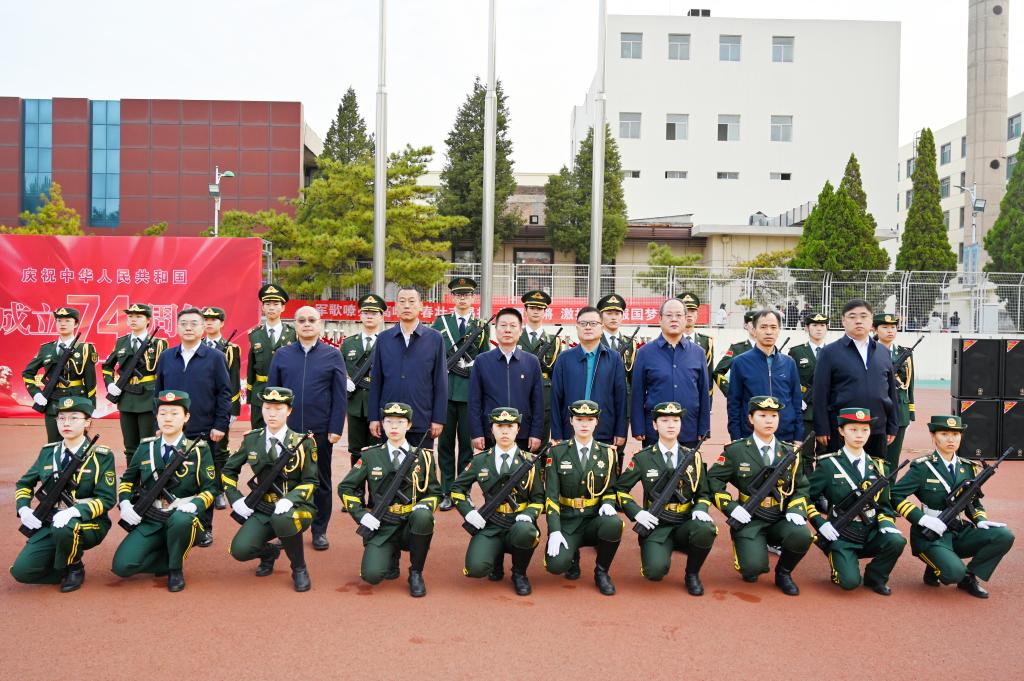 五星红旗高高飘扬。来自校大学生艺术团的四位同学进行了主题为《以汾院青春,谱写国旗礼赞》的配乐诗朗诵。同学们“请党放心,强国有我”的铮铮誓言在操场上空久久回荡。
