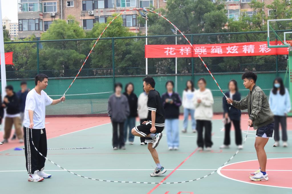 开赛前,裁判长张丽老师代表裁判员宣誓,102101-4班成嘉乐代表运动员宣誓。花样跳绳队的同学们表演了各种各样的花式跳法,有双摇跳、车轮跳、交互绳,彩虹绳、五角绳、网绳等,充分展现了花样跳绳运动的丰富多彩和简便易行。
