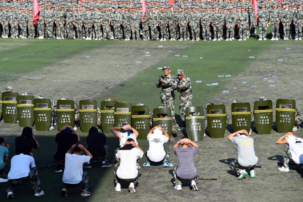 2023级各参训连队学生英姿飒爽、军容严整、精神振奋,迈着整齐的步伐、喊着嘹亮的口号走过主席台。方队代表进行了军体拳、擒敌拳、匕首操、应急棍、队列会操、反恐防爆、持枪战术等精彩表演,充分展现了2023级新生朝气蓬勃、积极向上的精神风貌,赢得了现场师生的阵阵掌声。