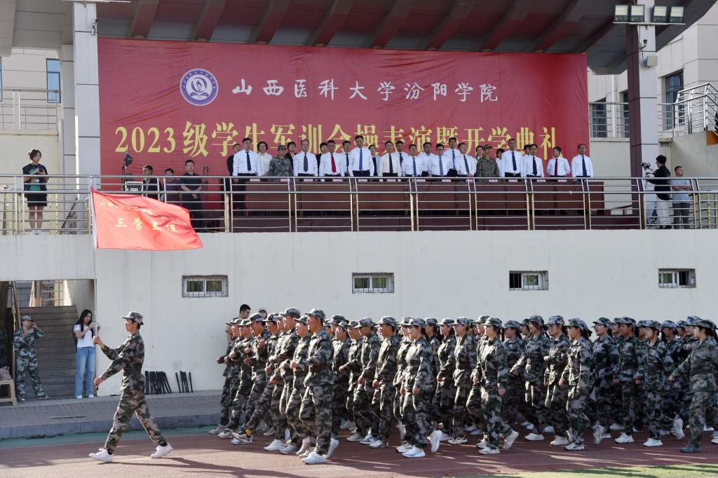 2023级新生军训会操表演暨开学典礼在校歌《白衣天使的摇篮》歌声中圆满结束。