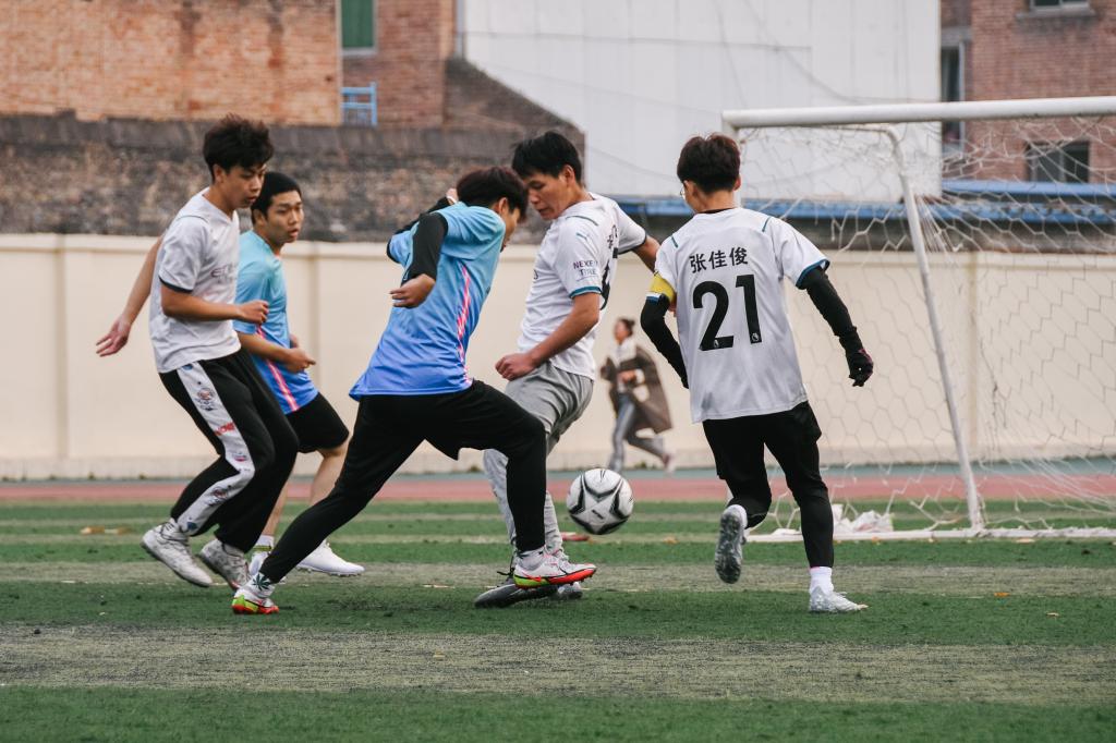 一年一度的足球联赛不仅能够帮助同学们强健体魄,展示大学生的青春活力,也培养了同学们的团队合作意识把严谨求实的态度、坚强拼搏的精神并运用到日后的学习生活中。