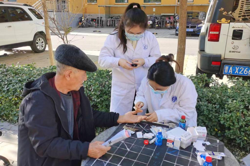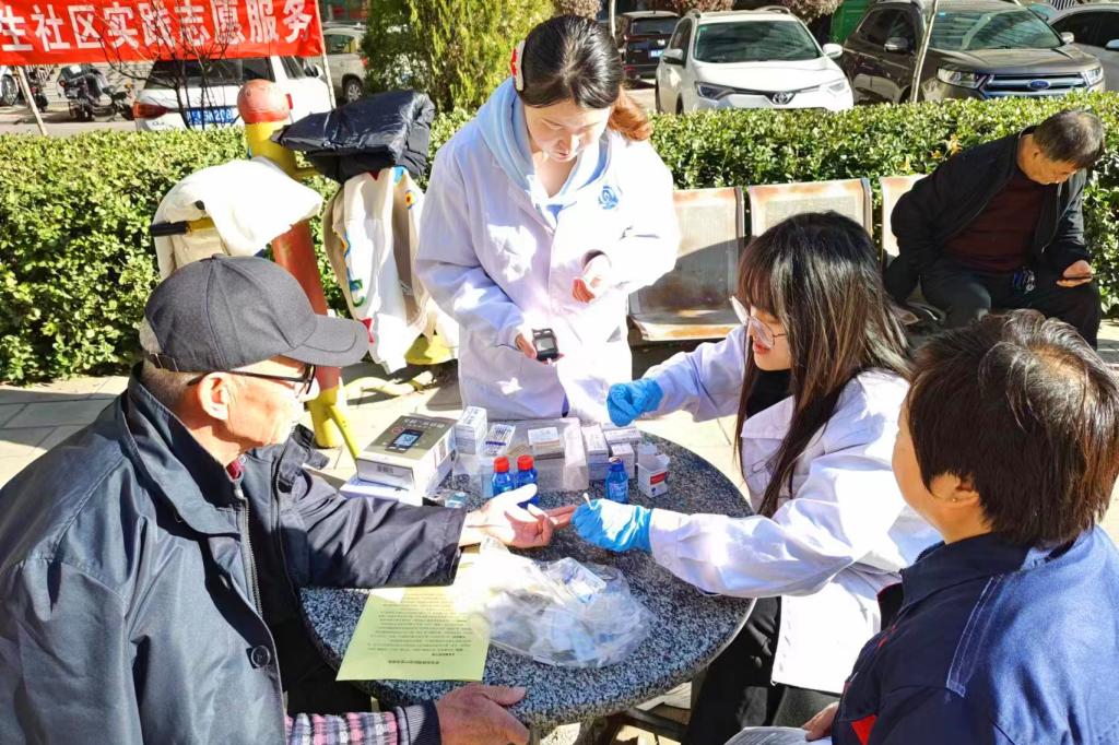志愿服务团队分别在北门社区逸景华庭小区和瑞景华庭小区广场设置志愿服务点,队员们充分发挥各自医学专业优势和特点,分工协作,开展测血糖、量血压、测血型、检查视力、清洗眼镜、健康宣传等健康志愿活动。不少居民闻讯赶来,同学们认真操作,亲切交谈,并将检查结果告知居民。此外,同学们还为居民们发放了健康教育资料,面对居民们提出的关于健康管理、慢性病防治、饮食搭配等医学专业的问题,尽己所学,耐心解答。