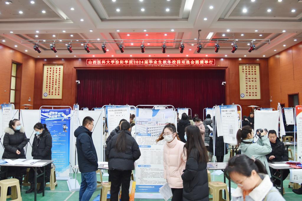 此次双选会以2024届毕业生为主要服务对象,同时还包括2023届未就业的部分毕业生。双选会邀请了中铁十二局集团有限公司中心医院、晋城市妇幼保健院、淮南天诺生物科技有限公司、山西迪安医学检验中心有限公司等县级及以上医疗卫生单位和优秀医药民营企业等56家用人单位前来参会,为同学们提供岗位1000余个。同期,线上双选会在丁香人才网举办,有105家单位参会,提供了954个岗位。