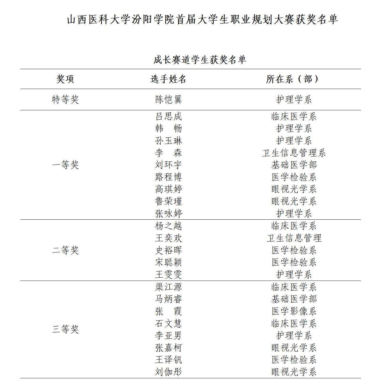 经过系部初赛、选拔赛,两个赛道全校2005名参赛学生中共有45名选手脱颖而出晋级决赛。根据安排,择优15名学生参加了山西医科大学组织的决赛,其余学生参加学校组织的决赛。12月6日,必赢组织的决赛在学术报告厅开幕。校党委委员、副院长李荣江,学生工作部(处)部(处)长常明亮,校团委书记王建荣,学生工作部(处)副部(处)长侯泽,各系部党总支副书记及辅导员、学业导师、指导教师40余人莅临现场指导,200余名学生到场观摩学习。比赛过程中,选手们坚定自信、激情洋溢地从自我认知、职业决策、发展计划和路径实施等方面阐述了职业目标和理想,并回答了评委的提问。经过角逐,大赛共产生特等奖4名(为参加山西医科大学校赛选手)、一等奖15名(含参加山西医科大学校赛选手11名)、二等奖10名、三等奖16名,优秀奖175名;高胜利、冯佳菏等20名项目指导教师荣获优秀指导教师奖,医学检验系、眼视光学系、临床医学系、护理学系等4个系部荣获大赛优秀组织奖(获奖名单附后)。
