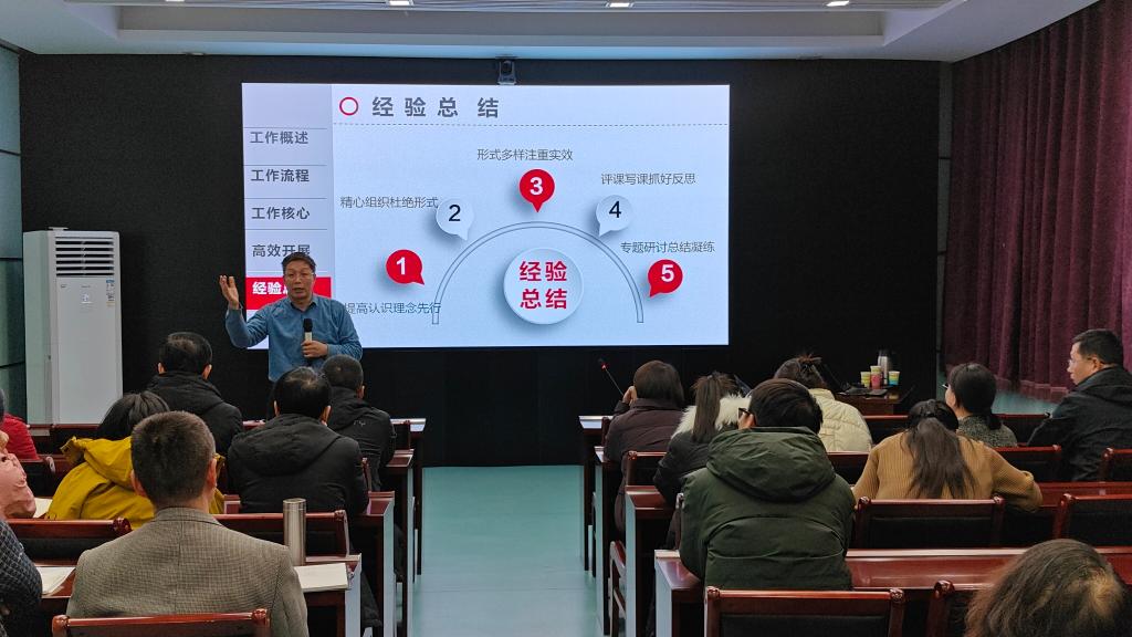 杨兴益教授以其丰富的教育实践经验与深厚的学术底蕴,为必赢教师带来了一场精彩纷呈的讲座。他首先用管理学的知识阐述了如何带好团队,做好教研室管理。语言凝练而又风趣,深深地吸引了在场教师。随后,讲座围绕主题“高效开展教研活动”展开。杨主任指出,教研活动的根本目的在于促进教师的专业成长、学生的全面发展和学校教育教学质量的整体提升,并深刻剖析了当前教研活动存在的问题,引发了大家的深思。接着,杨主任结合自身教学和教学管理近30年的丰富经验,讲解了切实可行的解决方案。他强调,高效的教研活动对于打造精品课程、培育优秀教师、提高教育教学质量、推动教学改革发挥着关键作用,需要全体教师高度重视和积极参与,需要明确目标、注重实践、不断探索与创新,需要加强团队协作,关注活动成效,如此才能确保教研活动高质量开展。