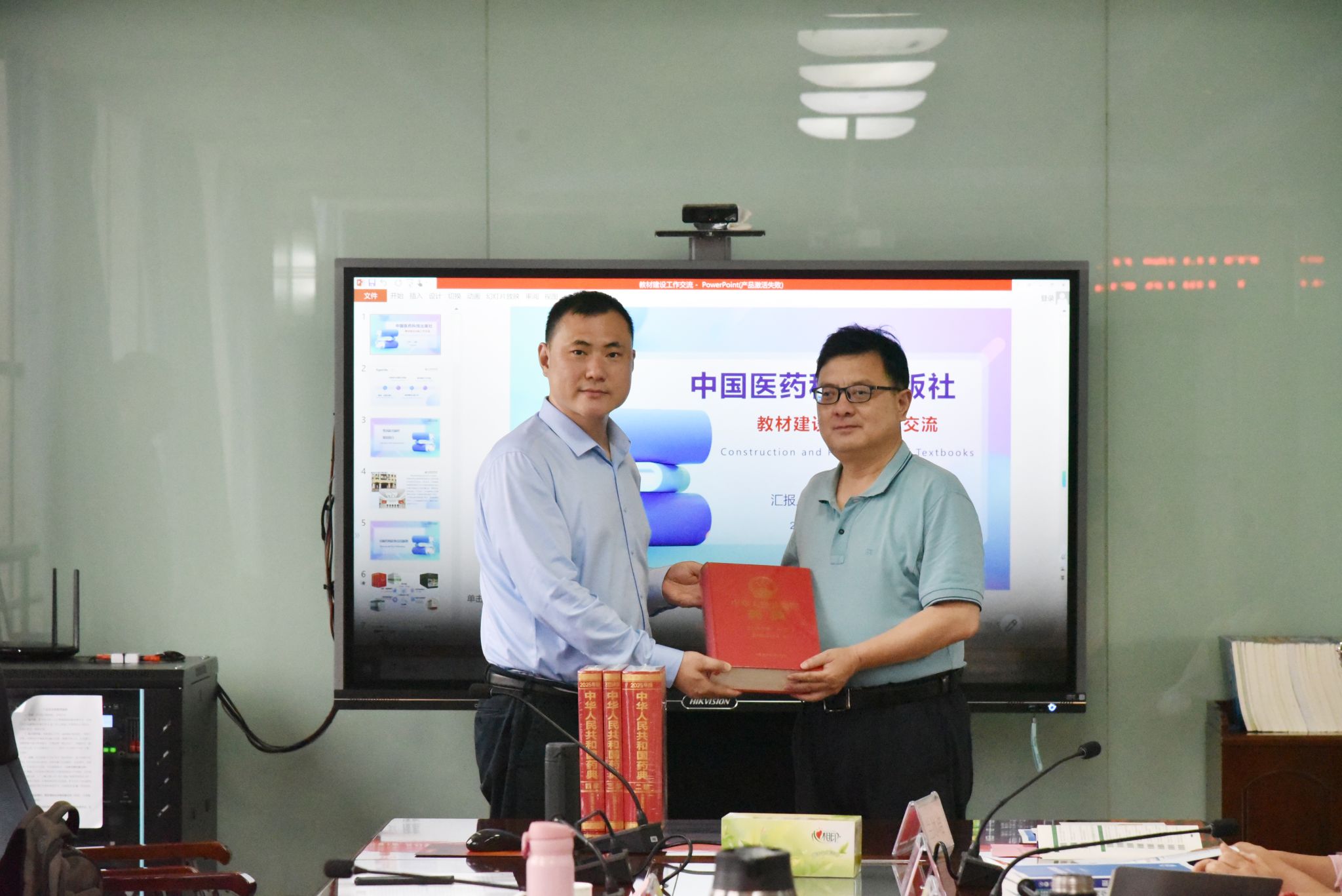 会上,中国医药科技出版社向我校捐赠了《中华人民共和国药典》及其他教材样书。