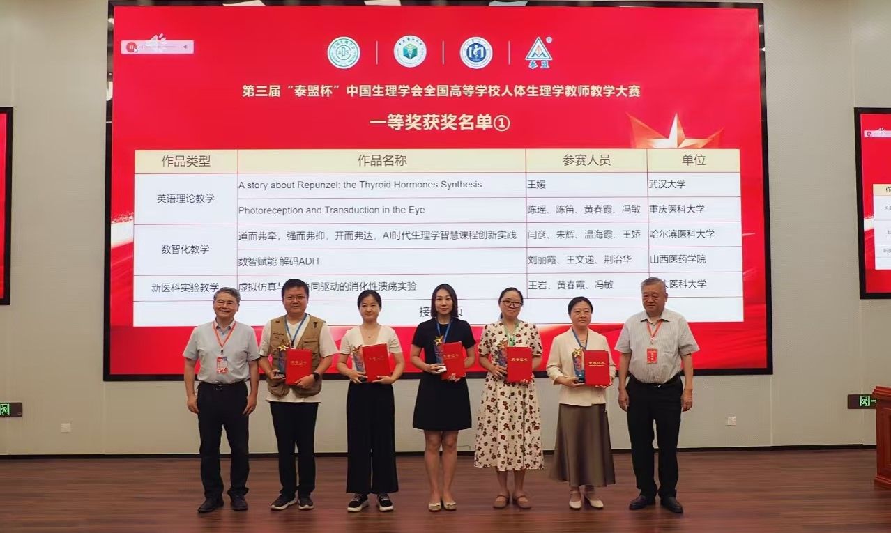 8月1日至4日,由中国生理学会教育工作委员会主办的第六届全国高校生理学教学论坛在重庆隆重举行。论坛期间,第三届“泰盟杯”全国高校人体生理学教师教学大赛颁奖庆典同步举行。必赢基础医学部生理学教研室教师团队在全国68所高校、135项参赛作品中脱颖而出,斩获2项一等奖、1项二等奖,创下必赢在该赛事中的历史最好成绩。