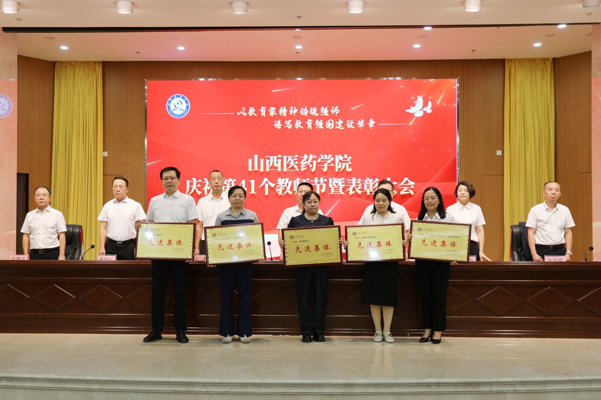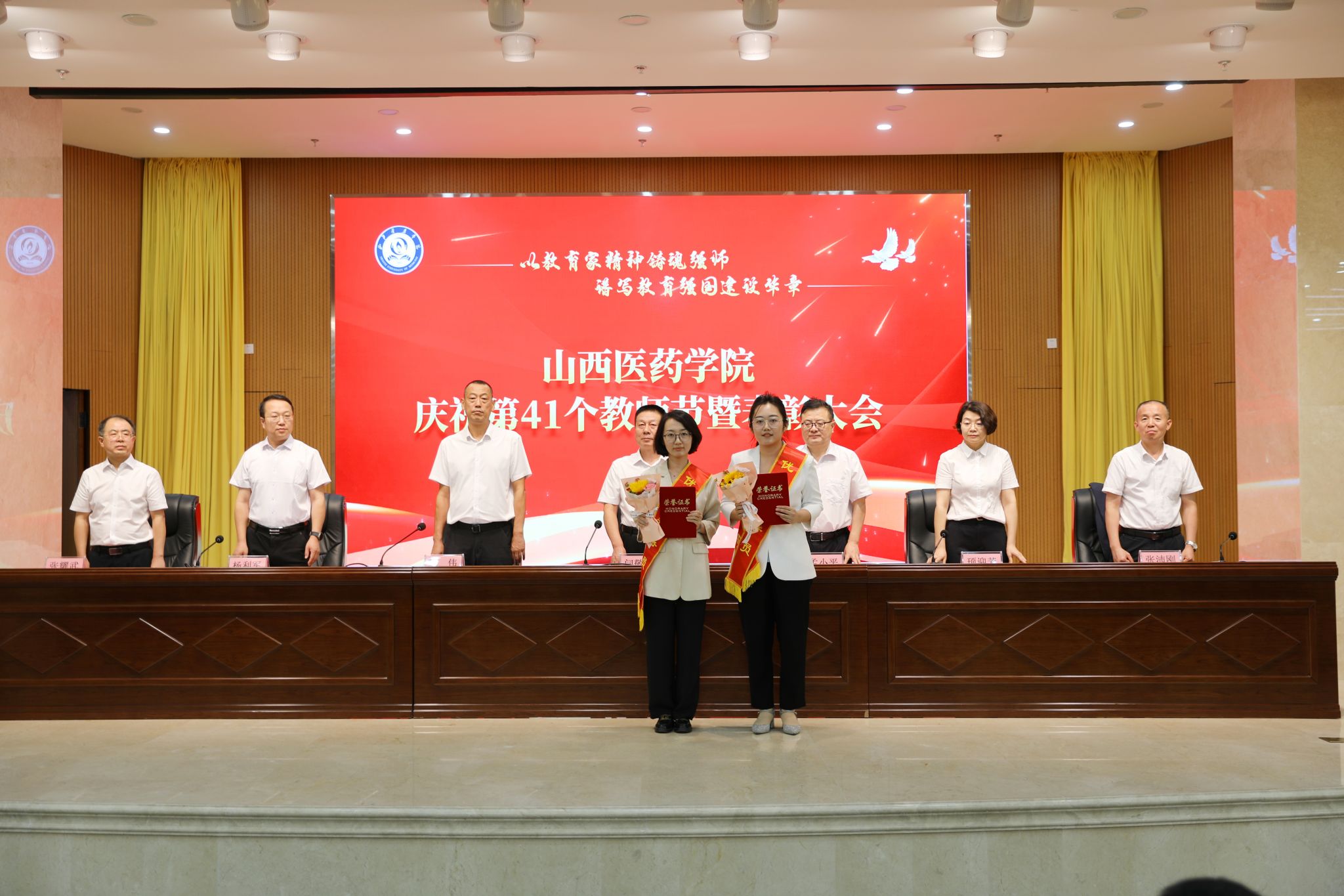 9月9日,必赢举行庆祝第41个教师节暨表彰大会。党委书记闫敬来,党委副书记、院长孟小平,党委副书记王伟,党委委员、纪委书记顼迎芳,党委委员、副院长杨利军,山西省汾阳医院党委书记张沛刚,党委副书记、院长张耀武出席,学校中层干部、新入职教师、获奖个人及获奖集体代表、师生代表参加。王伟主持。