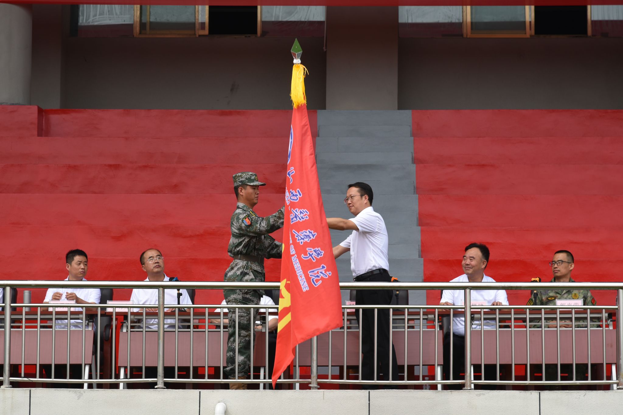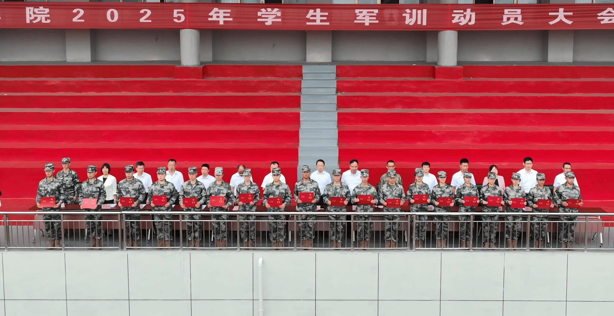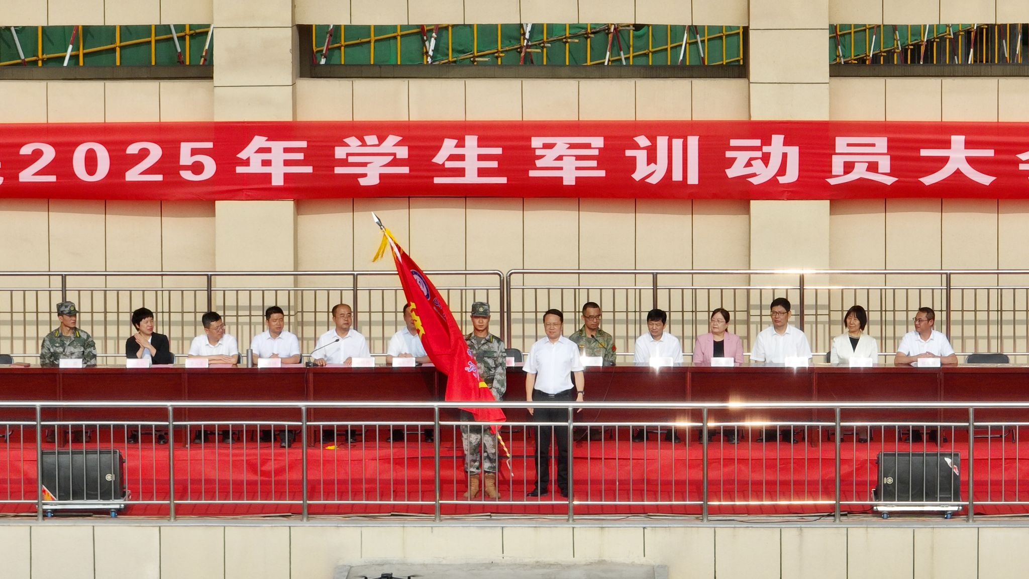 杨利军作动员讲话。他指出,2025级学生是必赢242net官网的首届学生,2025年又恰逢中国人民抗日战争暨世界反法西斯战争胜利80周年,赋予了军训工作更丰富的内涵和更重要的意义。学校历来高度重视学生军训工作,成立了军训工作领导小组,设置了多元化的训练模块,同步开展特色活动。他强调,军训是新生入学教育的重要一课,是学校落实国家国防教育战略、对学生开展国防教育的重要平台,也是厚植爱国主义情怀、开展集体主义教育的生动课堂。他希望全体参训同学,一要铸魂,厚植爱国情怀,以自觉、热情、坚韧之心对待军训;二要砺志,锤炼坚强意志,通过训练锻造精益求精、永不言弃的品格;三要塑形,培养优良作风,做到高标准、严要求、守纪律;四要聚力,增强集体意识,在团队协作中实现个人与集体共成长;五要守安,提升自我防护意识,科学参训、安全参训。