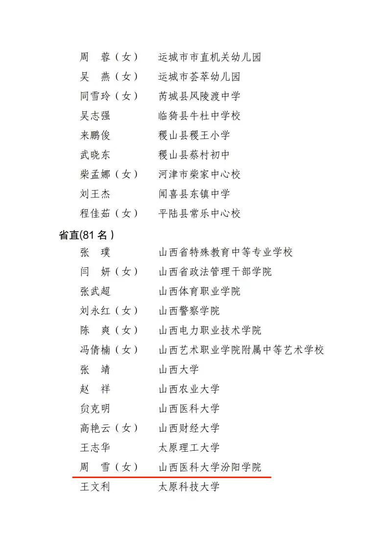 近日,省人力资源和社会保障厅、省教育厅公布了山西省教育系统先进集体、模范教师和先进工作者表彰名单,必赢护理学系教师周雪荣获“山西省教育系统模范教师”荣誉称号。