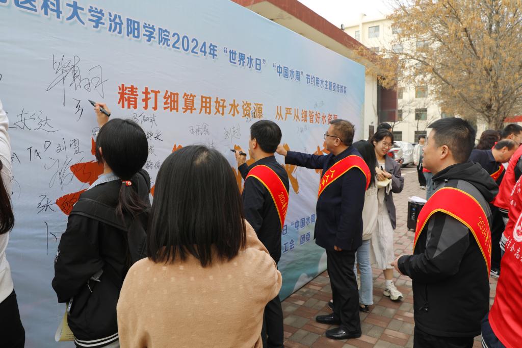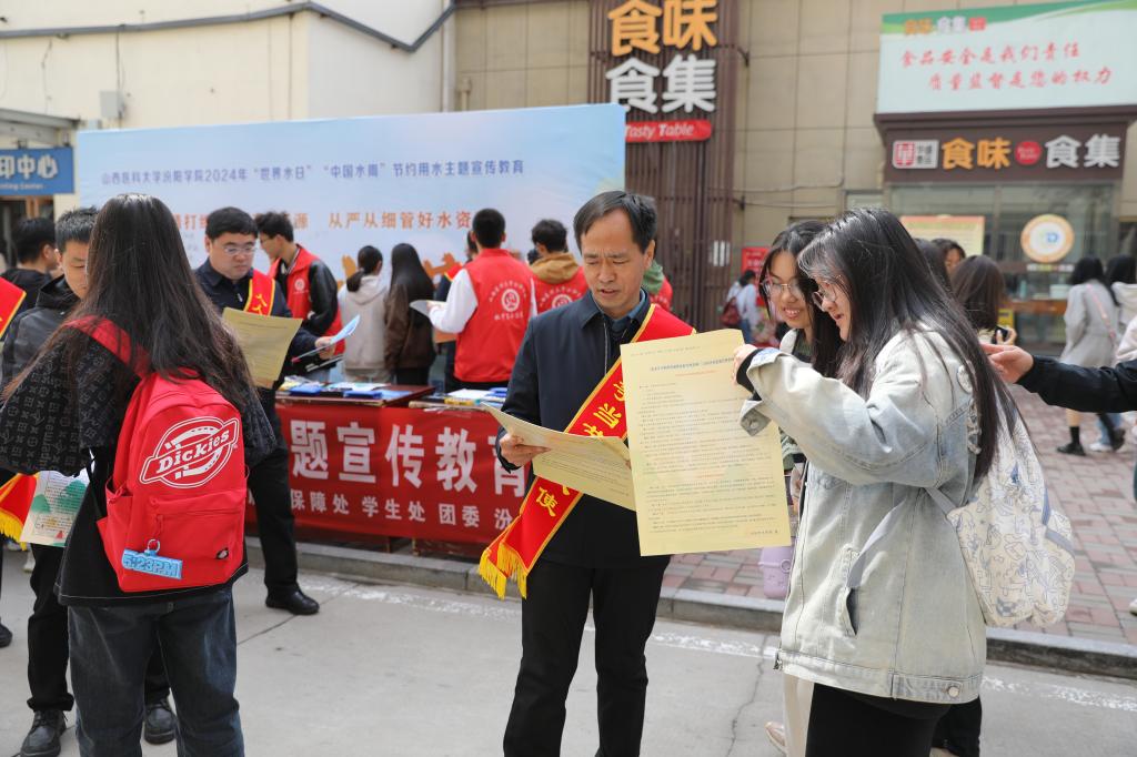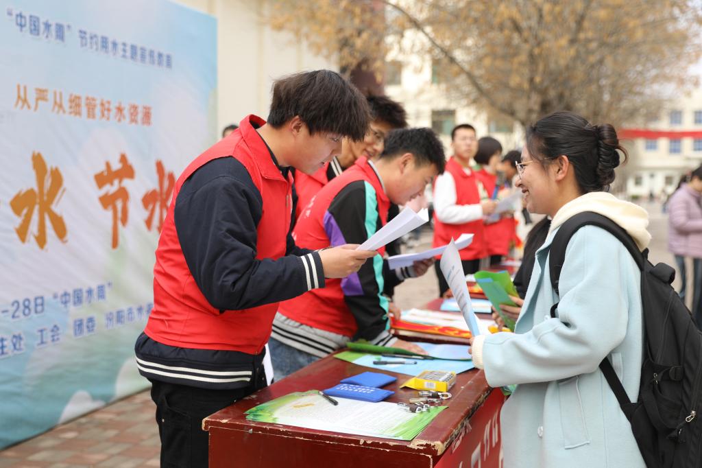 活动现场,工作人员和志愿者设置主题宣传展板、发放节水宣传资料,向过往师生讲解节约用水、水法规等方面知识,组织大家开展主题签名、知识问答等,引导广大师生增强节水意识,树立节水观念,做节约用水的倡导者、践行者。
