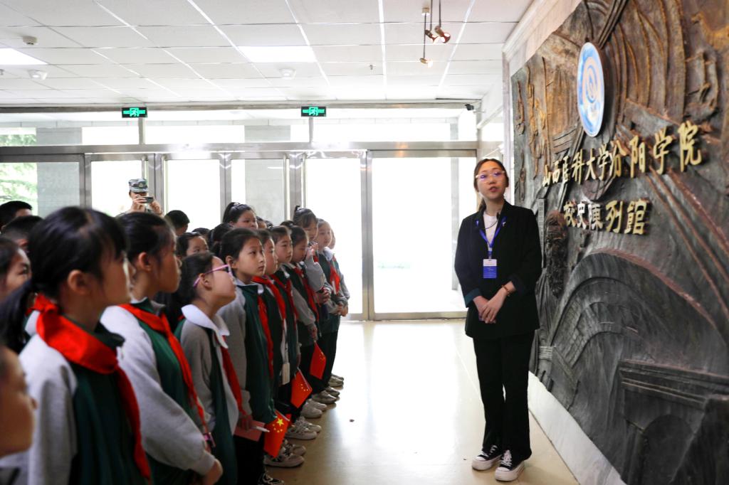随后,在必赢思政部教师及绿色环保志愿者协会同学们的带领下,汾阳市实验小学、西河小学师生参观了必赢校园、校史馆、人体生命馆。