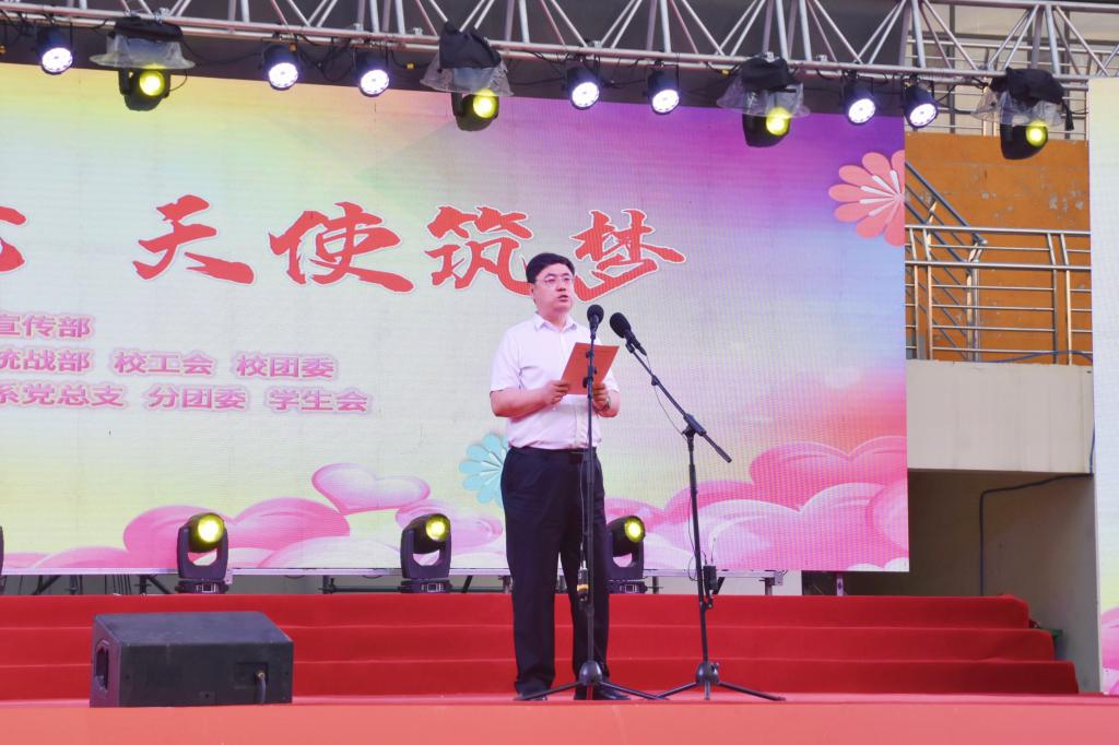 校党委委员、宣传部部长樊瑞晶致辞。樊瑞晶部长向出席活动的各位领导、来宾表示热烈的欢迎和衷心的感谢,向辛勤耕耘在护理教育一线的老师们致以亲切的问候和崇高的敬意,向护理学系全体同学致以节日的祝贺。他指出,护理工作是卫生健康事业的重要组成部分,护理工作者是推进健康中国建设的重要力量。希望全体师生同心同德,以高度的事业心和责任感,坚守“健康所系、性命相托”的誓言,一路耕耘、一路高歌,为开创护理事业辉煌的明天而努力奋斗,为促进全民健康和健康中国贡献汾阳学院力量。